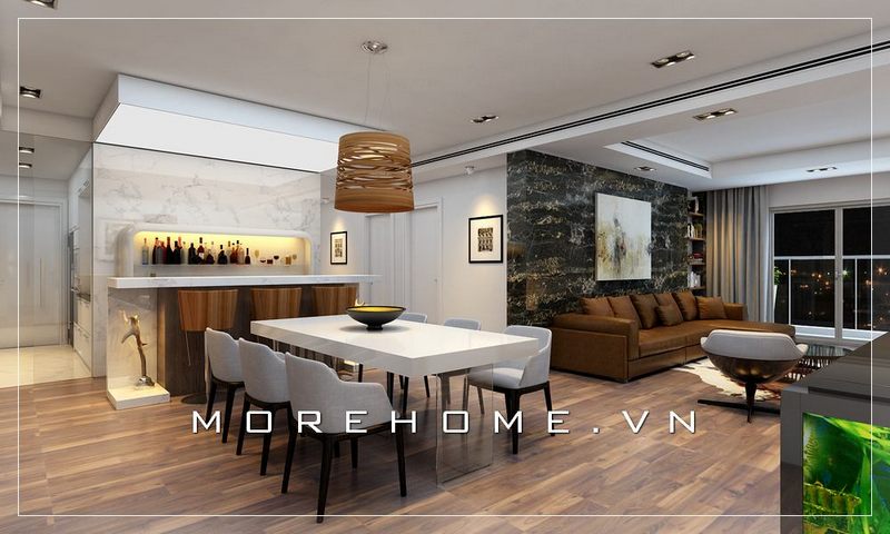 Thiết kế nội thất phòng ăn hiện đại, đơn giản và tiện lợi cho cư dân căn hộ.